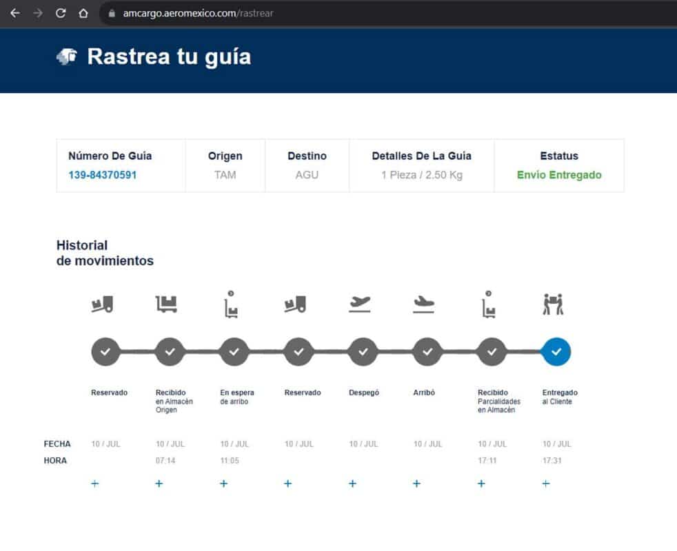 Num de Guía: 139-84370591 de Aeromexico Cargo