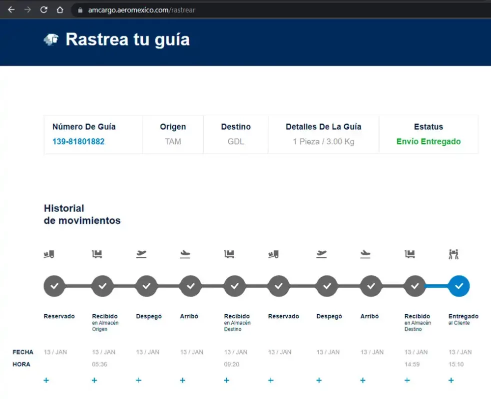 Num de Guía: 139-81801882 de Aeromexico Cargo
