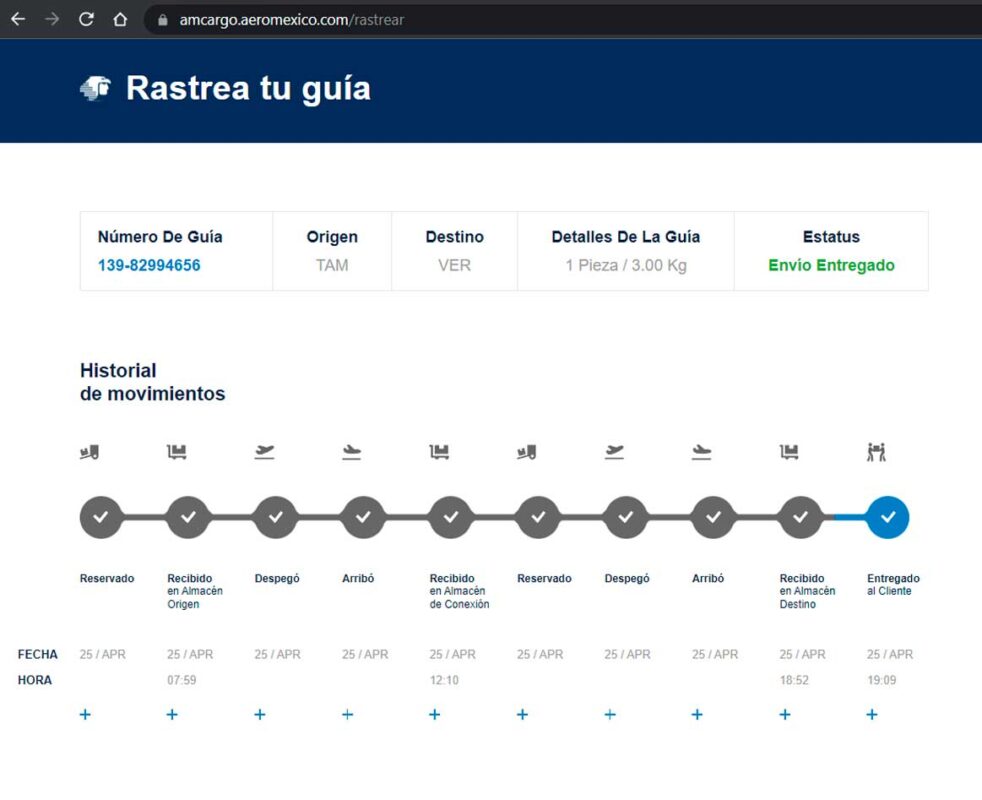 Num de Guía: 139-82994656 de Aeromexico Cargo