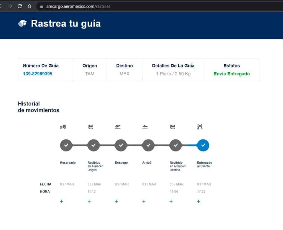 Num de Guía: 139-82989395 de Aeromexico Cargo