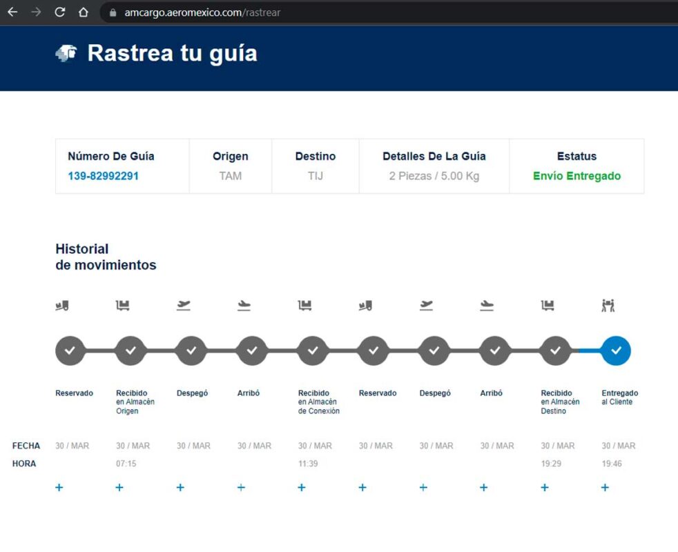 Num de Guía: 139-82992291 de Aeromexico Cargo
