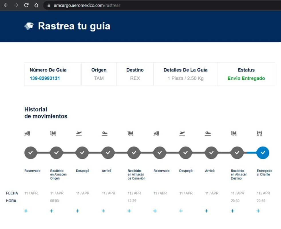 Num de Guía: 139-82993131 de Aeromexico Cargo